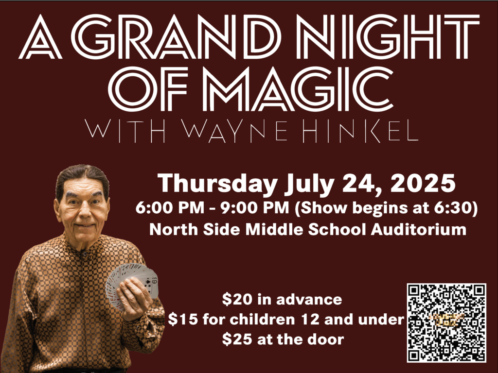 MUNCIE, IN—A Grand Night of Magic with magician Wayne Hinkle will take place at Northside Middle School on July 24th, beginning at 6 p.m.