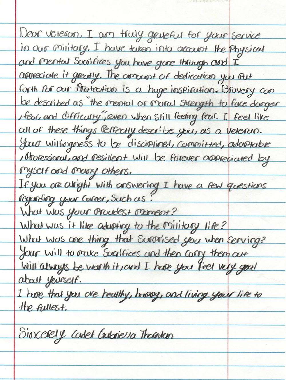 MUNCIE, IN—Each year, November is designated as National Veterans and Military Families Month. During the month of November, MuncieJournal.com will be publishing Letters To Veterans, written by students from Burris and Muncie Community Schools. We will be publishing one letter each weekday.