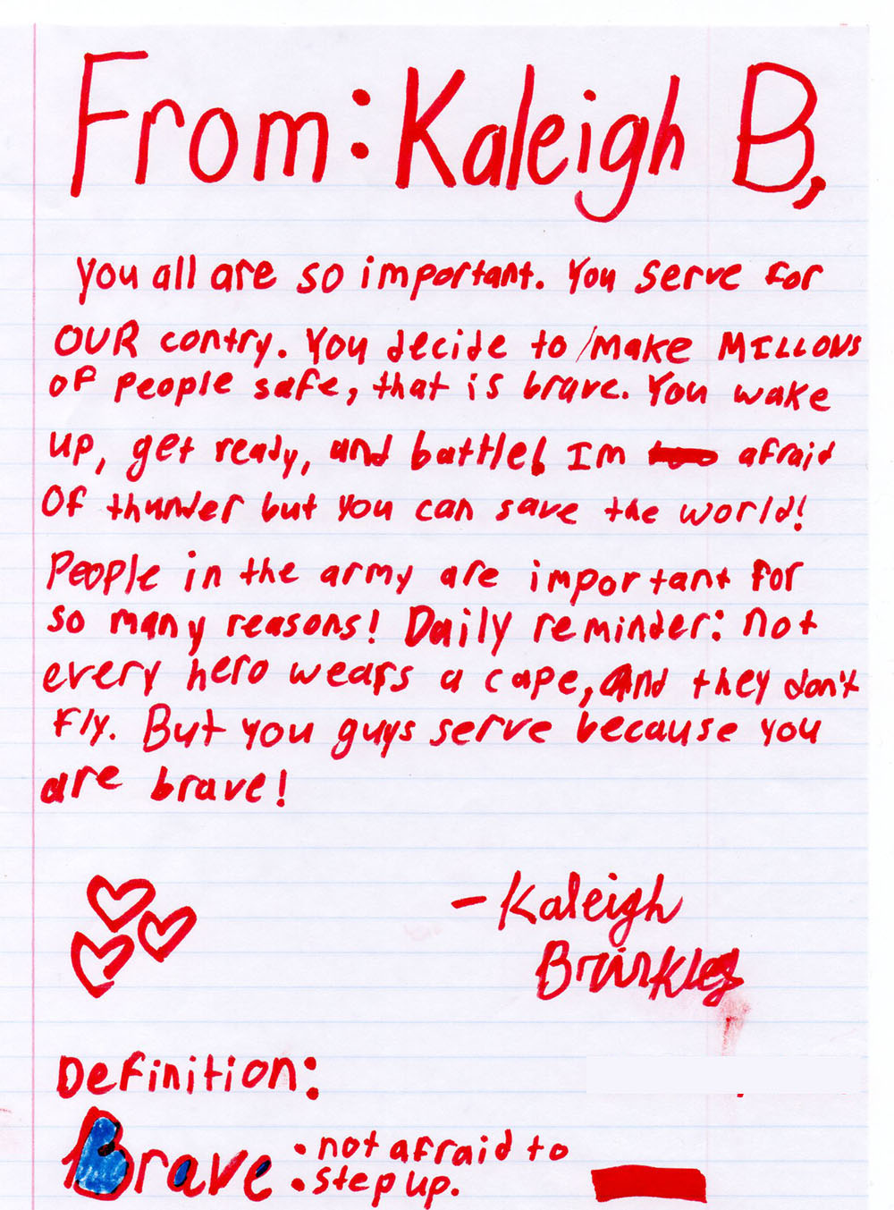 ‘Letters to Veterans’ From Area Students: Today’s Letter Written by Kaleigh Brinkley