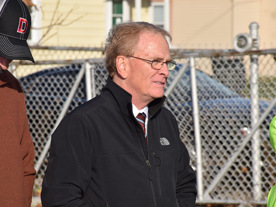 What the area looked like during the groundbreaking. All of this concrete will be removed and replaced with grass, baseball and soccer fields. (See architectural rendering below.) Photo by: Mike Rhodes