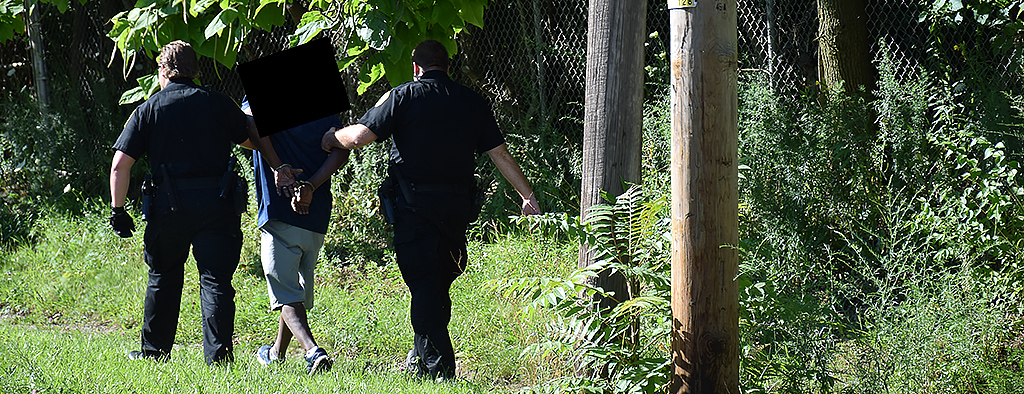 An alleged hit and run suspect is apprehended moments after fleeing the scene of a car accident. Photo by: Mike Rhodes