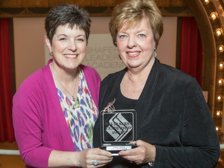 Foundation president, Kelly K. Shrock poses with Jeannine Harrold, the 2018 recipient of the David Sursa Leadership Award. The award recognizes and encourages extraordinary leadership by a nonprofit board member in Delaware County.