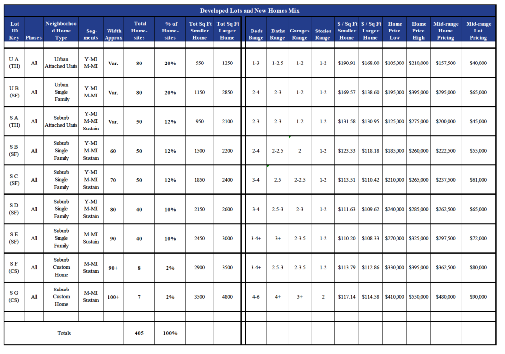 Findings –Study findings reveal need for nine specific housing types over the next five years. In summary these include: urban attached, urban single family, suburb attached, suburb single family, and suburb custom homes.