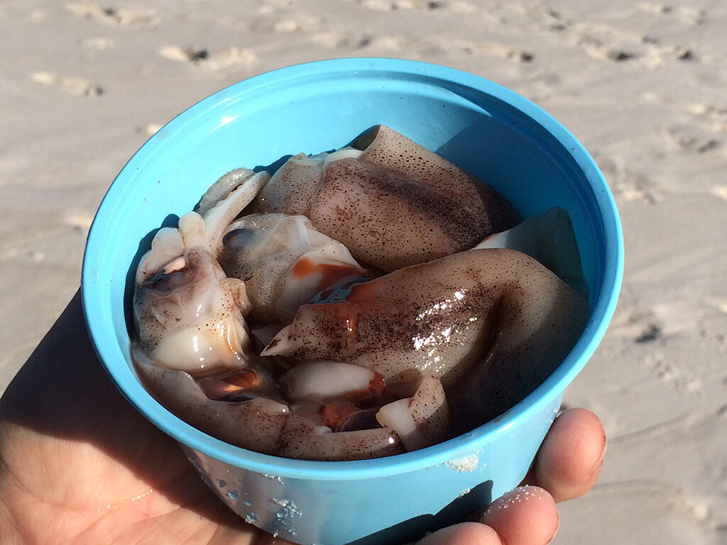 Sliced-up squid parts look yummy… if you’re a fish. Photo by: Nancy Carlson