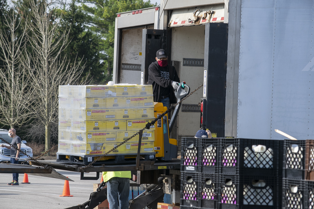 Food items were handed out by members of the Indiana National Guard to 607 cars filled with appreciative families. “John” and his cousin from Muncie were first in line to obtain food, after arriving at the parking lot at 3am in the morning—a seven hour wait.