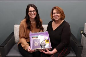 sue and box January 20, 2023 Emily Hitchcock and Sue Tschuor are pictured with a Leah’s Love Box. Photo courtesy of IU Health.