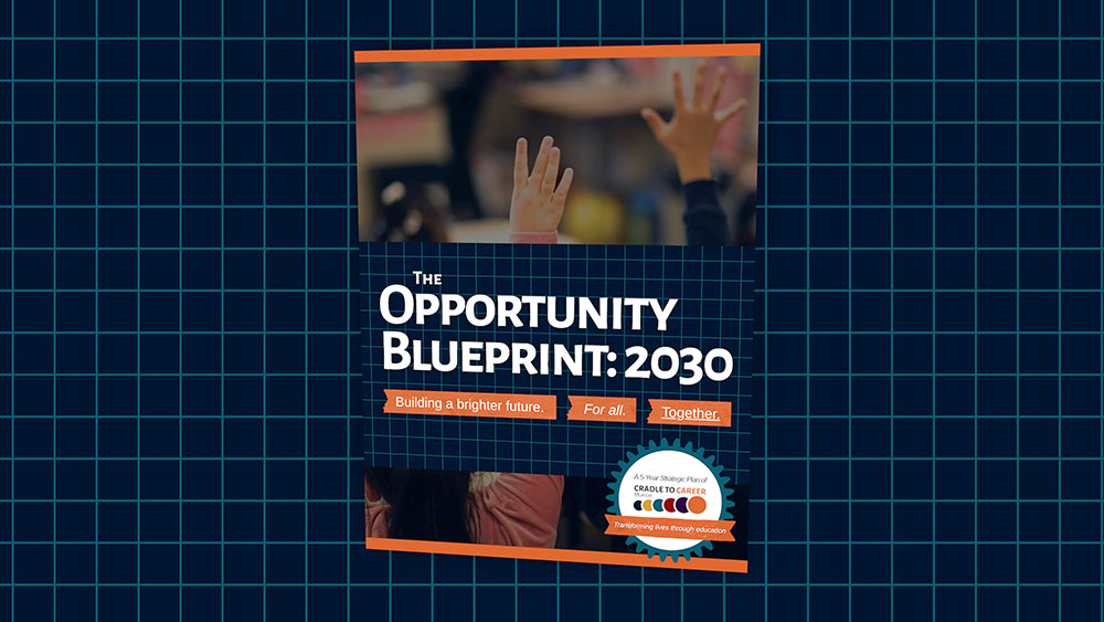 The Opportunity Blueprint: 2030 is a comprehensive, five-year strategic plan shaped by more than 150 community stakeholders representing a cross-section of interests. It lays out a focused path toward stronger educational outcomes and better long-term employment opportunities for all.