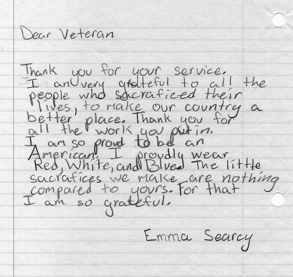 ‘Letters to Veterans’ From Area Students: Today’s Letter Written by Emma Searcy
