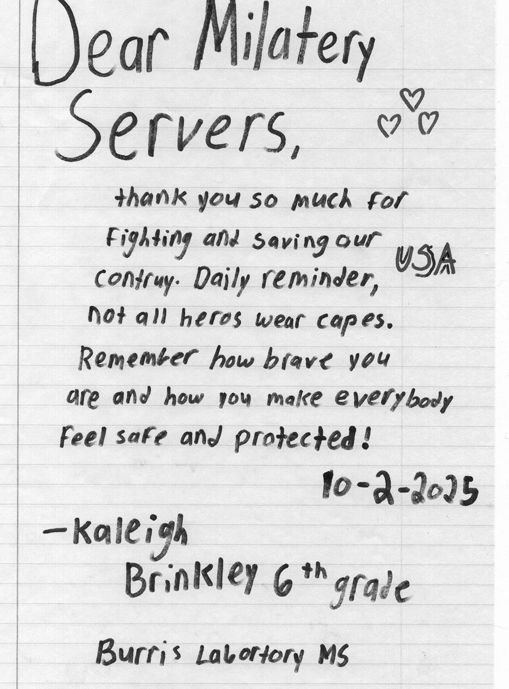 MUNCIE, IN—Each year, November is designated as National Veterans and Military Families Month. During the month of November, MuncieJournal.com will be publishing Letters To Veterans, written by students from Burris and Muncie Community Schools. We will be publishing one letter each weekday.
