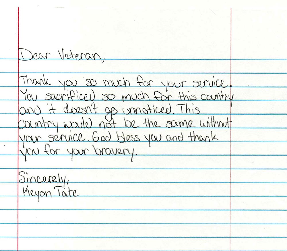 ‘Letters to Veterans’ From Area Students: Today’s Letter Written by Keyon Tate