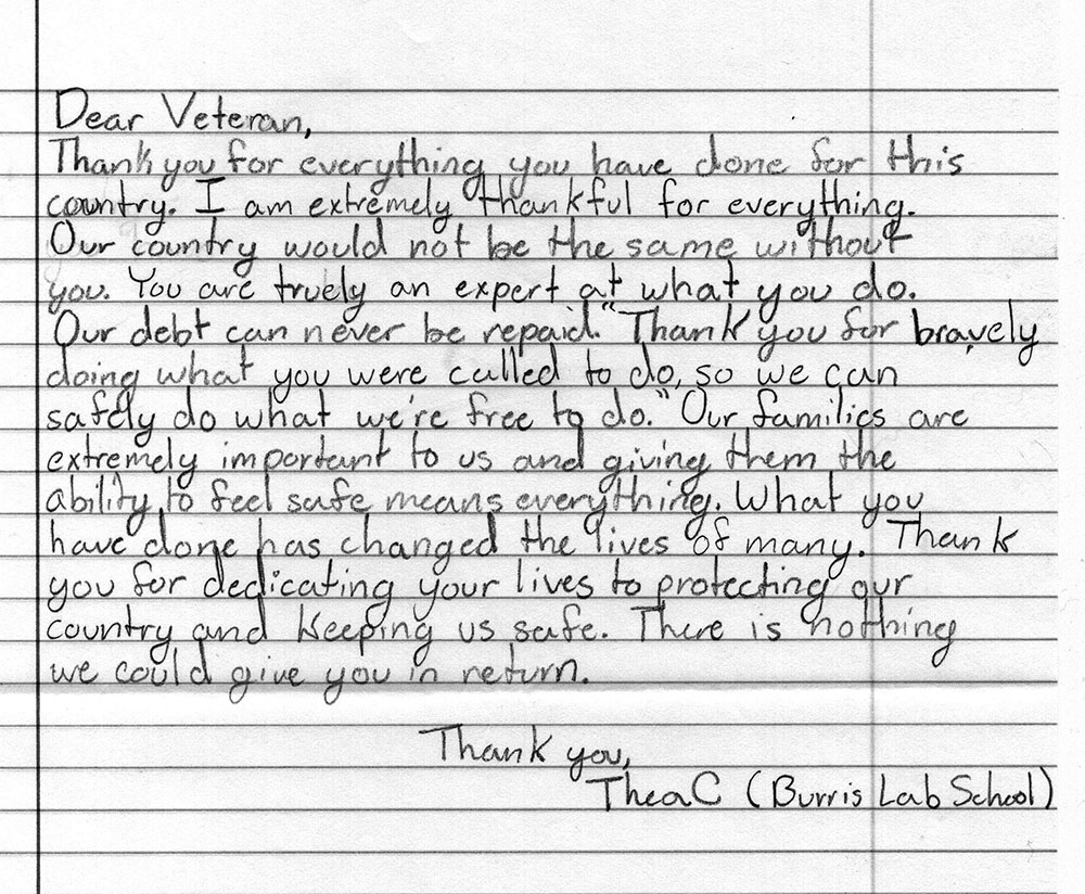 MUNCIE, IN—Each year, November is designated as National Veterans and Military Families Month. During the month of November, MuncieJournal.com will be publishing Letters To Veterans, written by students from Burris and Muncie Community Schools. We will be publishing one letter each weekday.