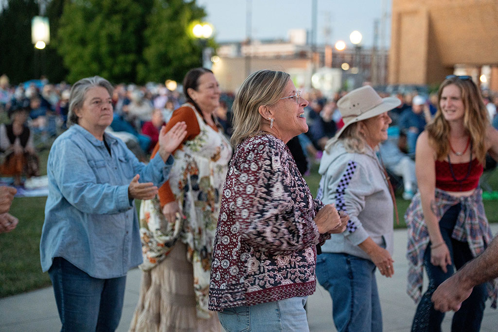 A group of attendees is pictured dancing at the Muncie Three Trails concert featuring Jenny DeVoe at Canan Commons in downtown Muncie. Photo courtesy of The Community Foundation of Muncie & Delaware County.