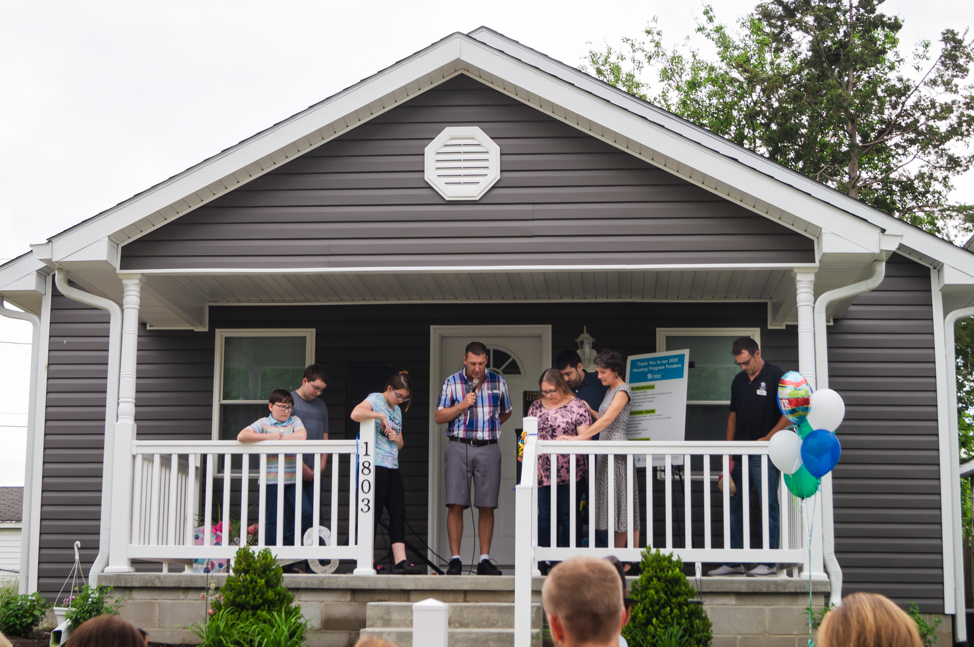 Friends and Community members join in prayer during Brandie’s home dedication in 2021 October 28, 2021