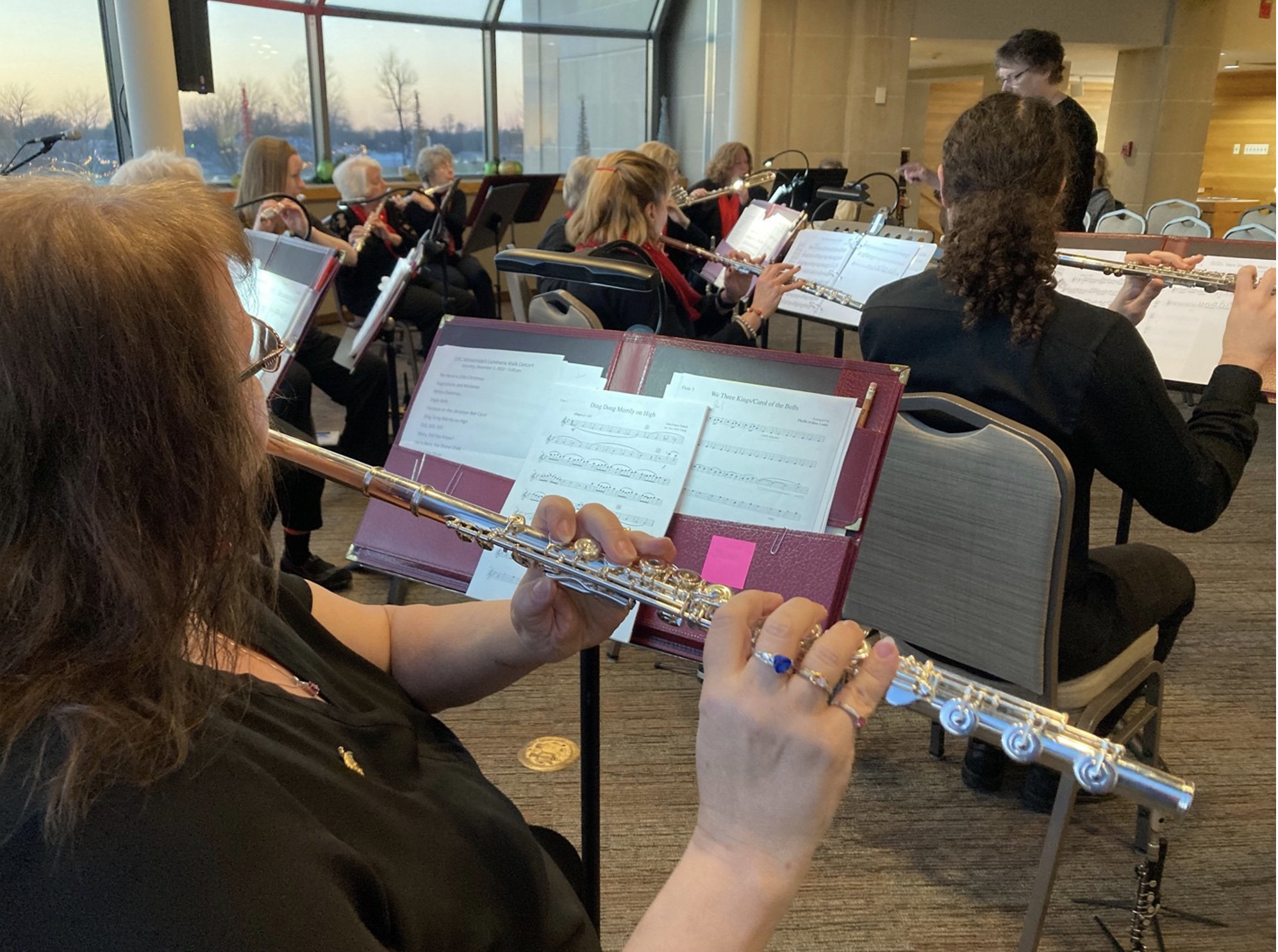 The Central Indiana Flute Choir in concert performance. The ensemble is part of America’s Hometown Band in Muncie.